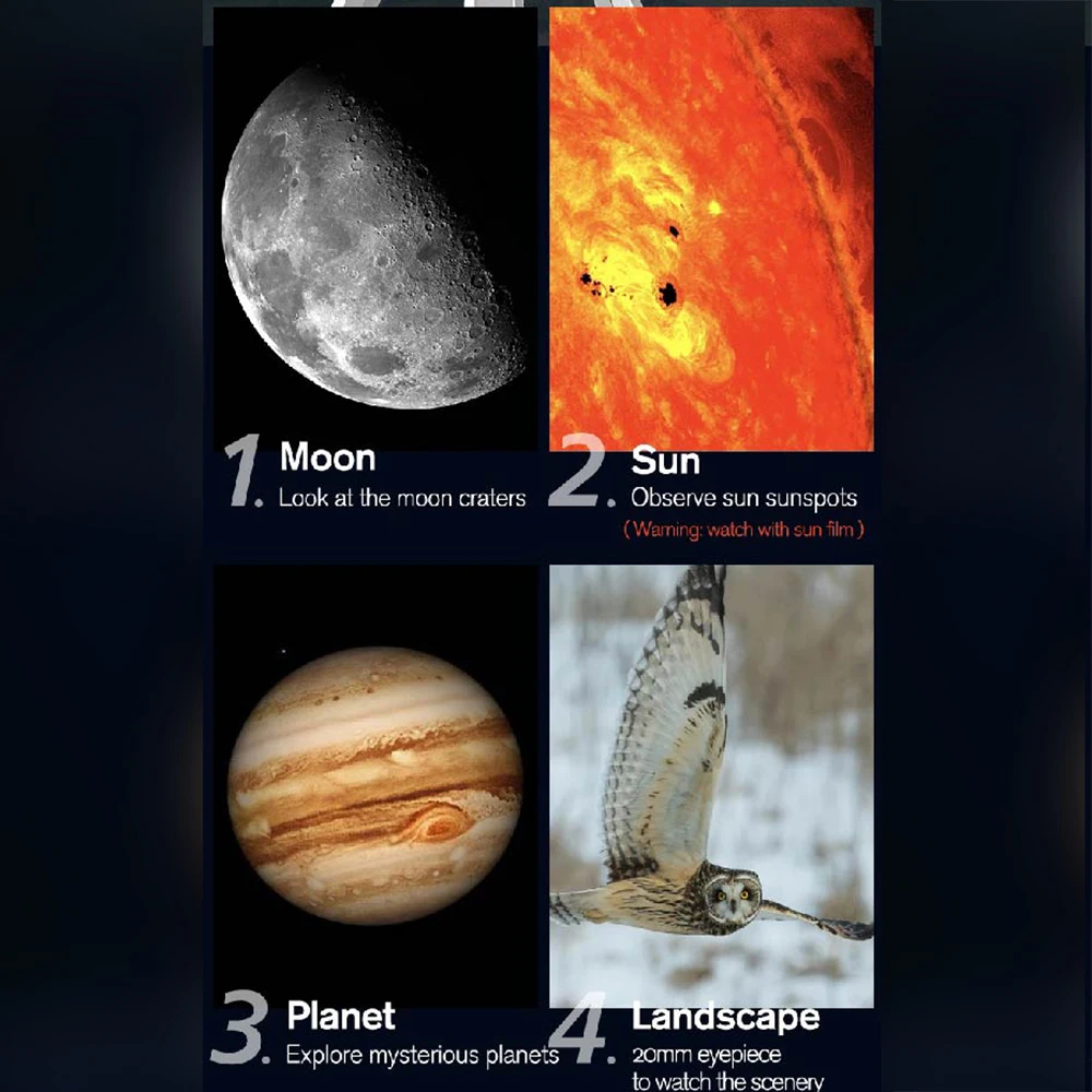 4. This telescope is an excellent choice for high-quality home education, suitable for starry sky viewing, bird watching, wildlife viewing, travel, city viewing.